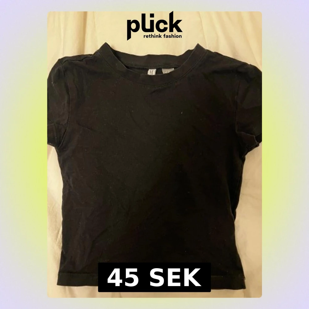 En enkel svart topp från H&M Divided i storlek XS. Modellen är klassisk med rund halsringning och korta ärmar. Materialet är mjuk bomull som känns skönt mot huden.