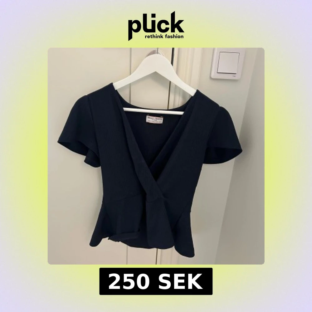 Snygg svart omlottopp från Holly & White med korta puffärmar och v-ringning.
