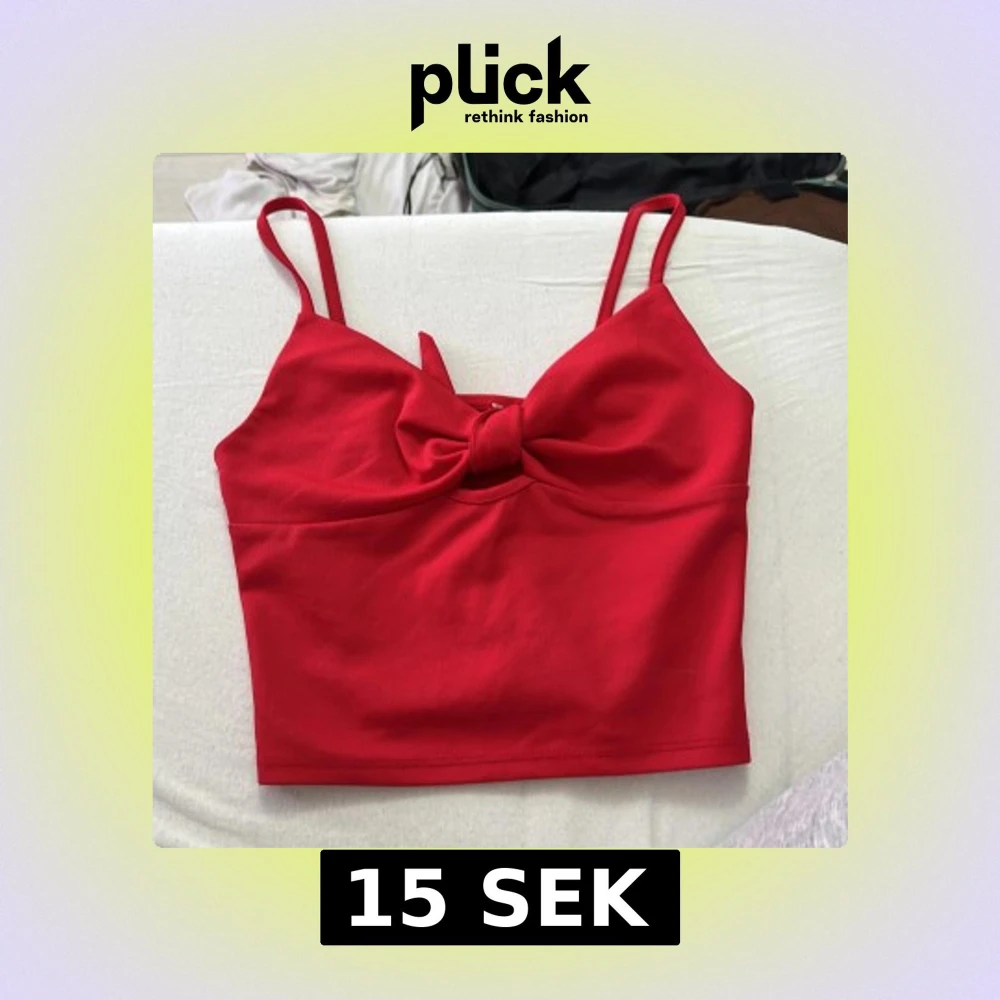 Snygg röd croppad topp med smala axelband och en stor rosett framtill. Perfekt för dig som vill sticka ut med en färgstark och trendig look. Toppens material känns mjukt och följsamt mot huden.