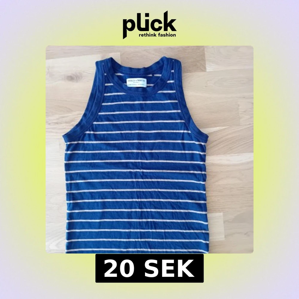 Säljer en blå och beige randig linnetopp från Holly & Whyte. Toppen är ärmlös med klassisk rund halsringning och raka, smala axelband. Perfekt för varma dagar och enkel att matcha med jeans eller shorts.
