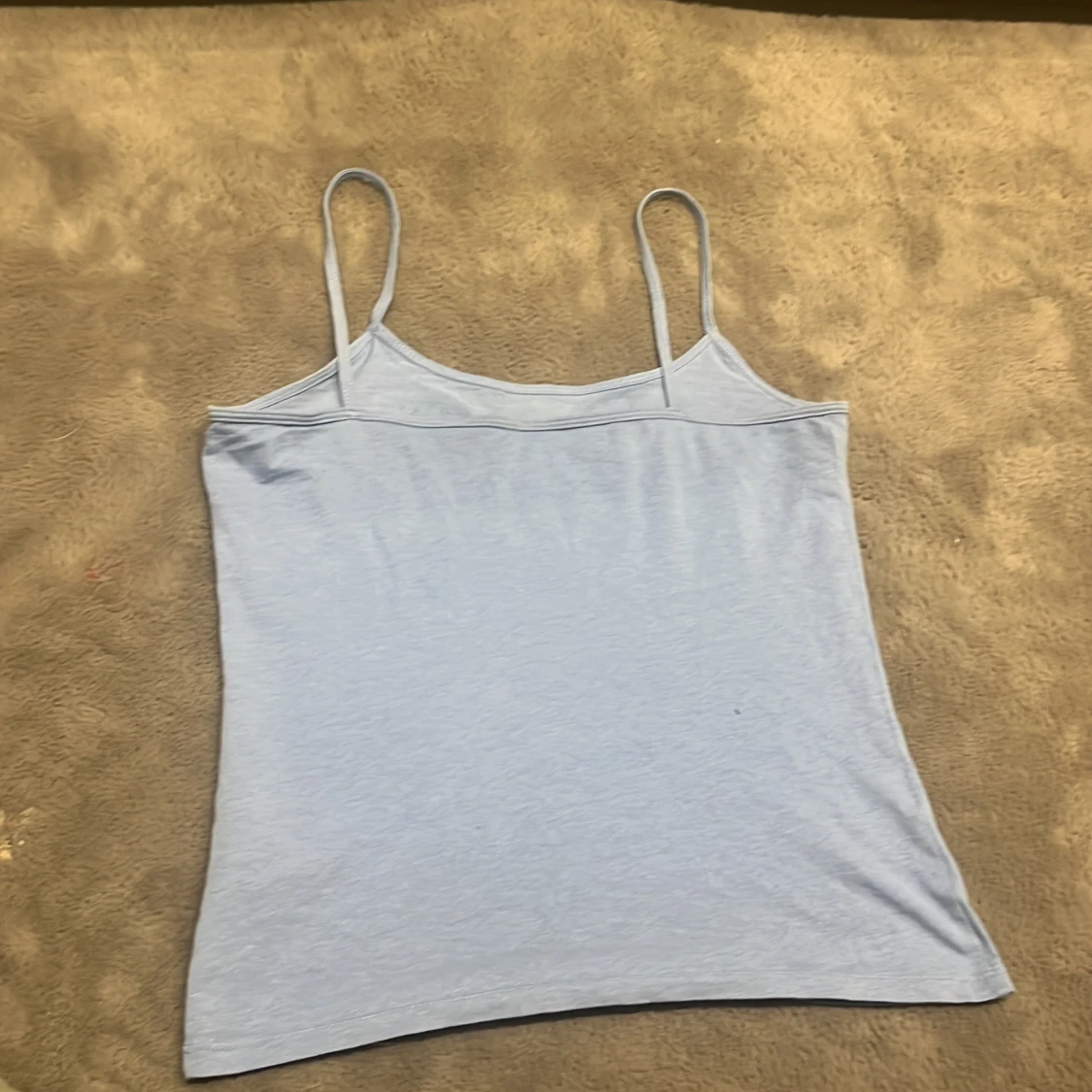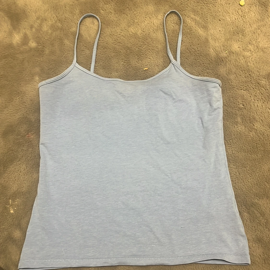 Säljer en enkel och stilren ljusblå linnetopp med tunna axelband. Perfekt för varma sommardagar eller som ett basplagg i garderoben.