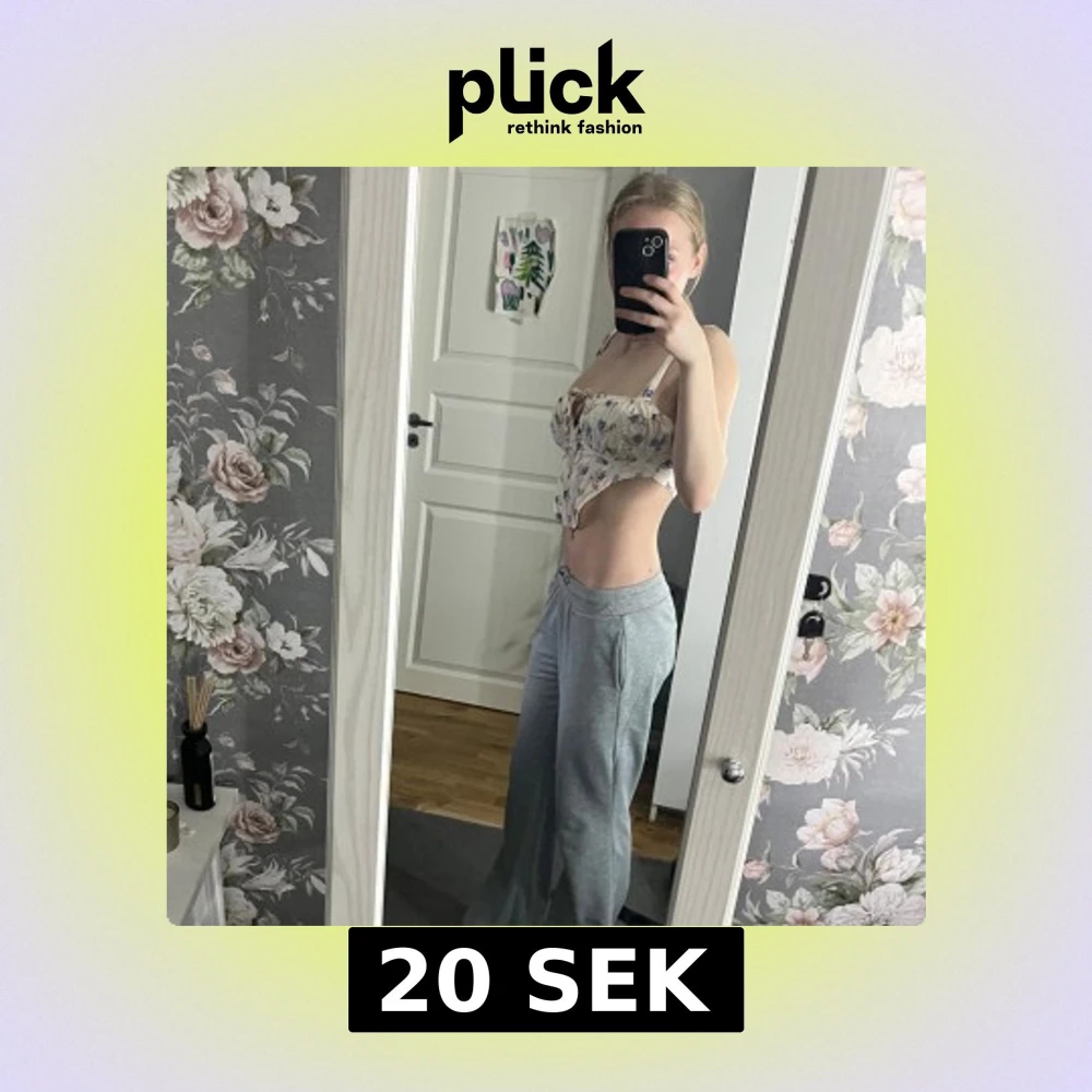 Snygg blommig korsettopp med smala axelband och en unik asymmetrisk nederkant. Perfekt för att ge en somrig touch till din outfit.