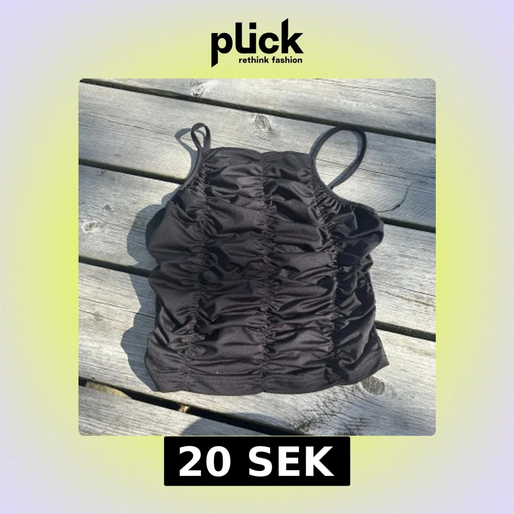 Säljer en svart topp med smala axelband och snygga rynkade detaljer både fram och bak. Den är från missäy