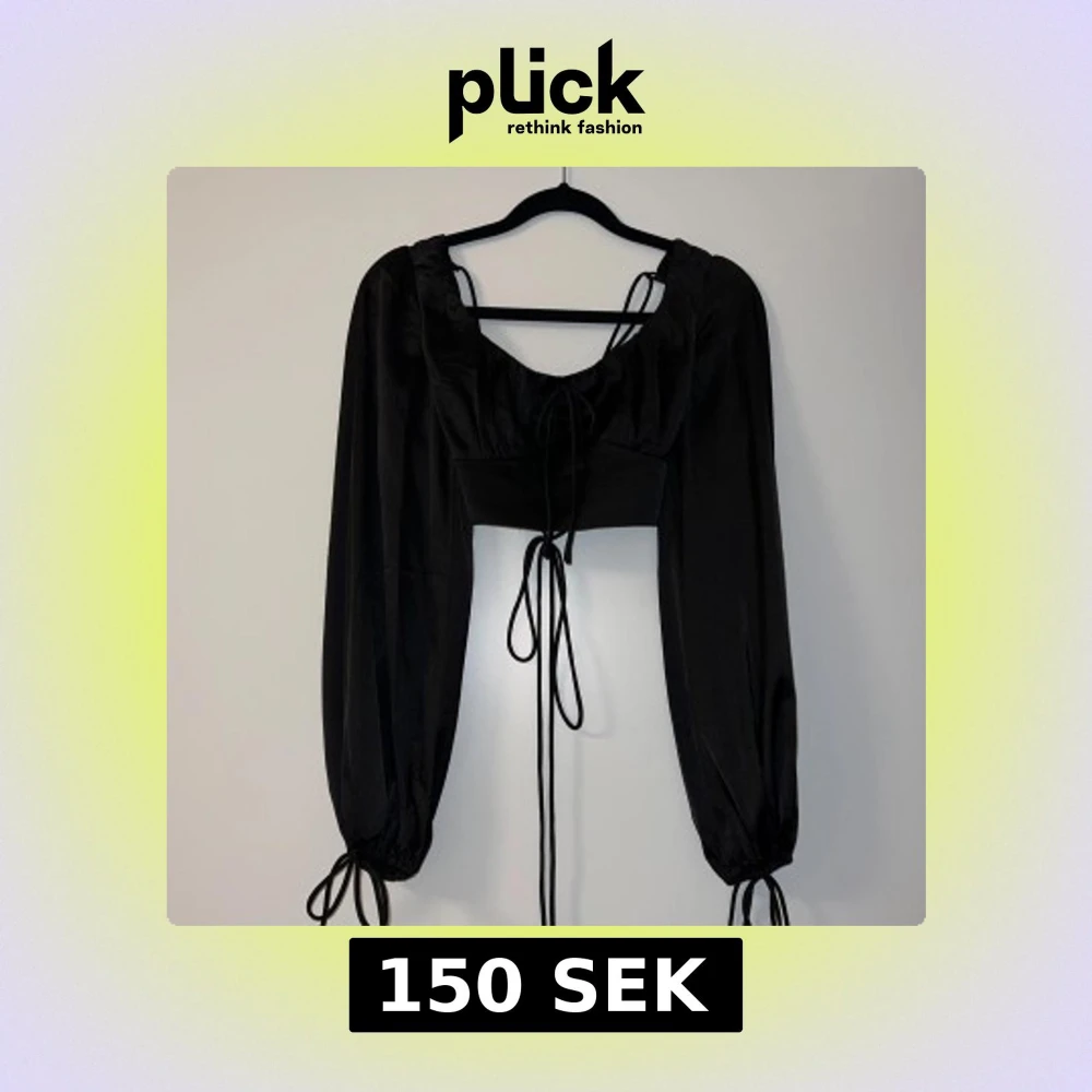 Snygg svart topp från Kiss The Sky i storlek XS. Toppen har långa ärmar och en trendig snörning framtill. Perfekt för en kväll ute eller en speciell tillställning. Andra bilden är på ryggen, så snyggt. Aldrig använd!