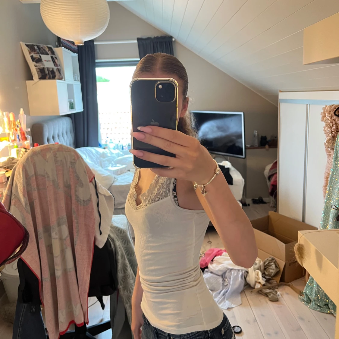 Vit spetslinnetopp från byTiMo XS