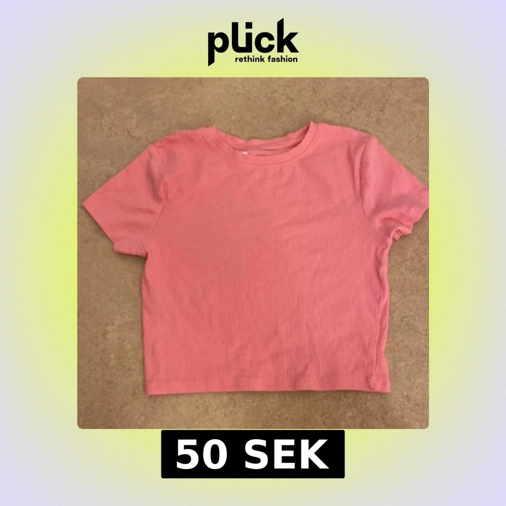 Säljer en söt rosa ribbad t-shirt med korta ärmar. Perfekt för en avslappnad stil.