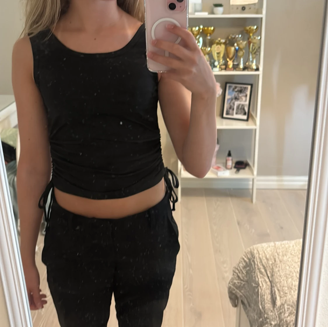 Svart linne i storlek xs från shein. Snörning på sidan så man kan ändra längd på tröjan. Bra skick. 40kr