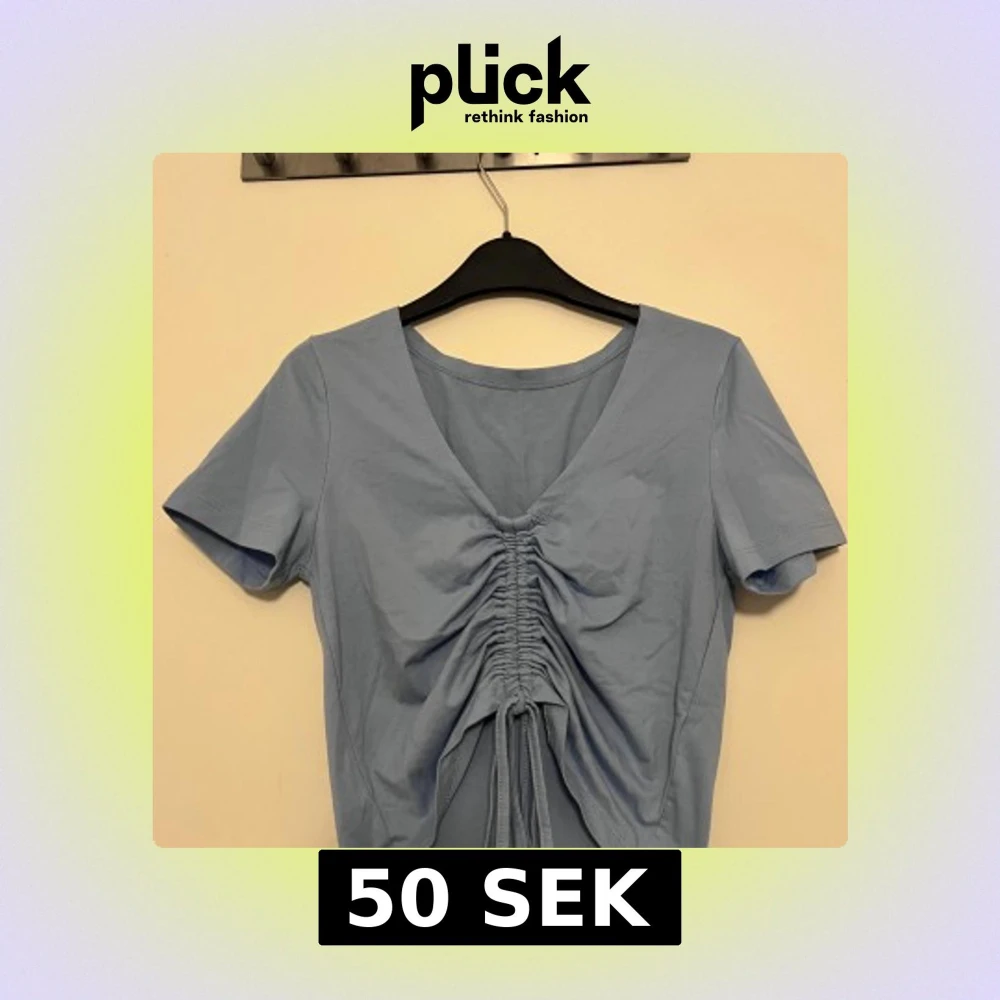 Snygg ljusblå topp med korta ärmar och v-ringning. Toppen har en trendig knytning framtill som ger en fin detalj. Perfekt för en avslappnad stil.