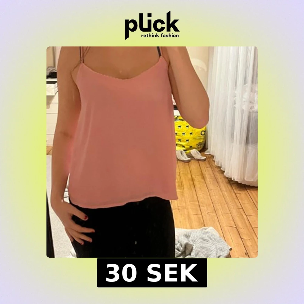 Supersöt ljusrosa linnetopp från Pimkie med tunna axelband som korsas i ryggen. Har en defekt i mitten av tröjan.