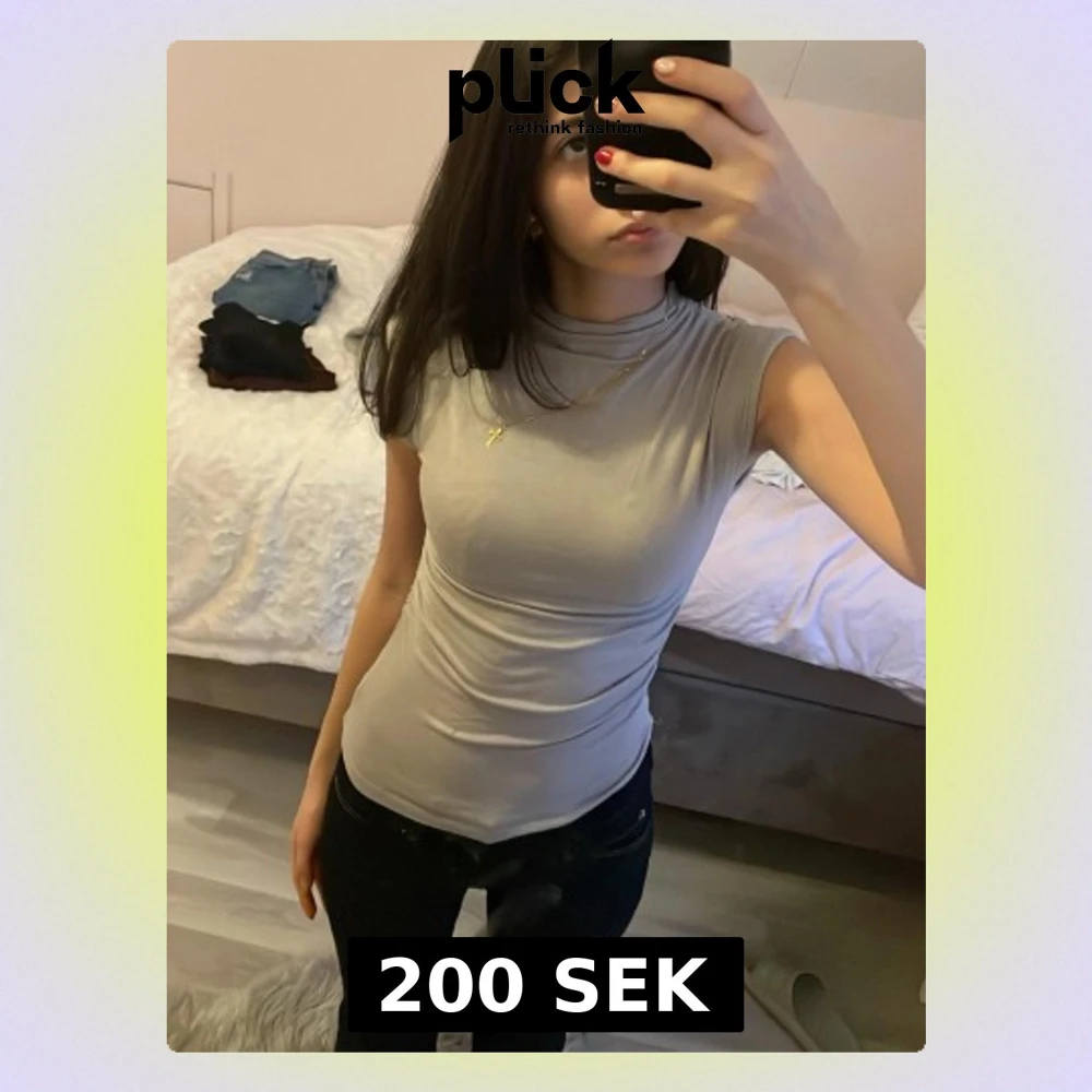 Säljer en beige polotopp från MISSÄY med ärmlös design och tight passform. Toppen har en hög hals och är gjord i ett mjukt, stretchigt material som sitter snyggt. Perfekt att styla med jeans eller kjol för en clean look.