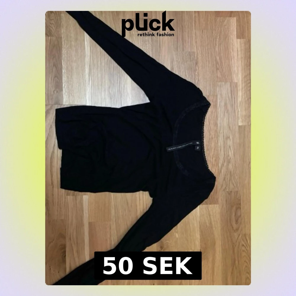 Säljer en svart långärmad topp från The Black Label Collection i storlek XS. Toppen har en rund halsringning med fin spetskant som ger en extra detalj. Enkel och stilren design, perfekt att matcha med olika outfits.