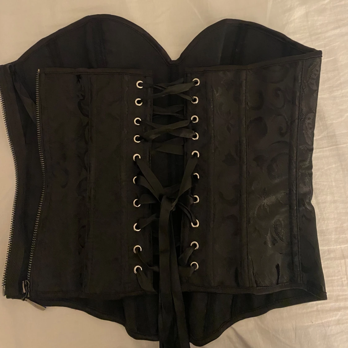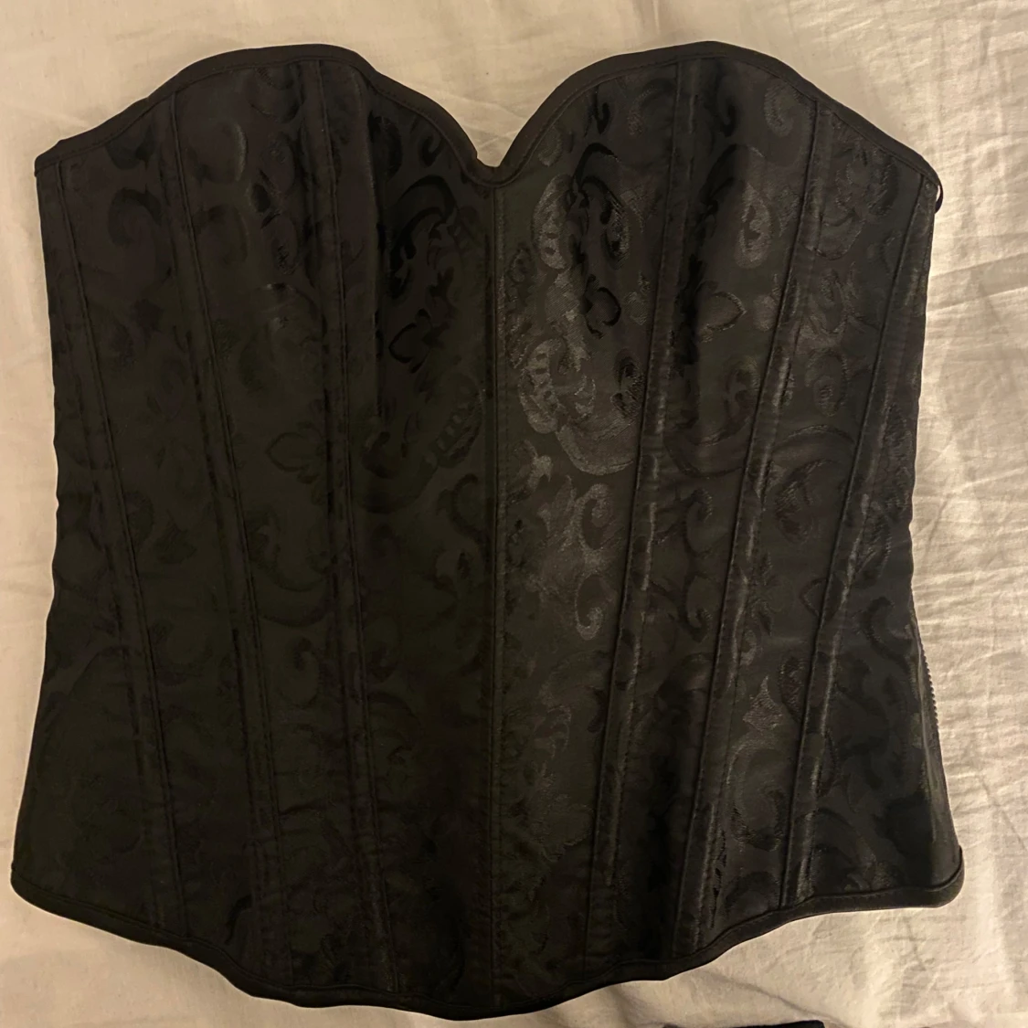 Supersnygg tight svart korsett med snörning i ryggen. Dragkedjan sitter på sidan för att få på sig den enkelt 🤍 den är i storlek XS och jag minns inte vart jag köpte den men det kan vara shein eller något sånt! Jag har endast använt den på halloween förra året 💋