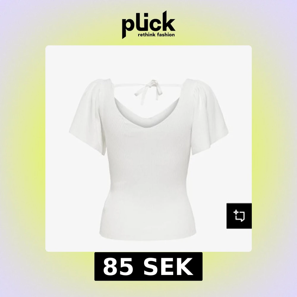 Säljer en söt vit ribbad topp med korta volangärmar och knytband i ryggen. Toppen har en v-ringad design och är perfekt för en sommaroutfit.