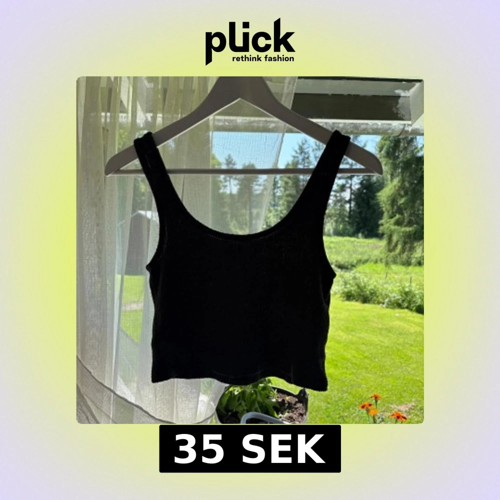 Svart croppad linnetopp från FB Sister i storlek XS. Toppen är ribbad och har breda axelband samt rundad halsringning. Perfekt för varma dagar och enkel att matcha med jeans eller kjol.