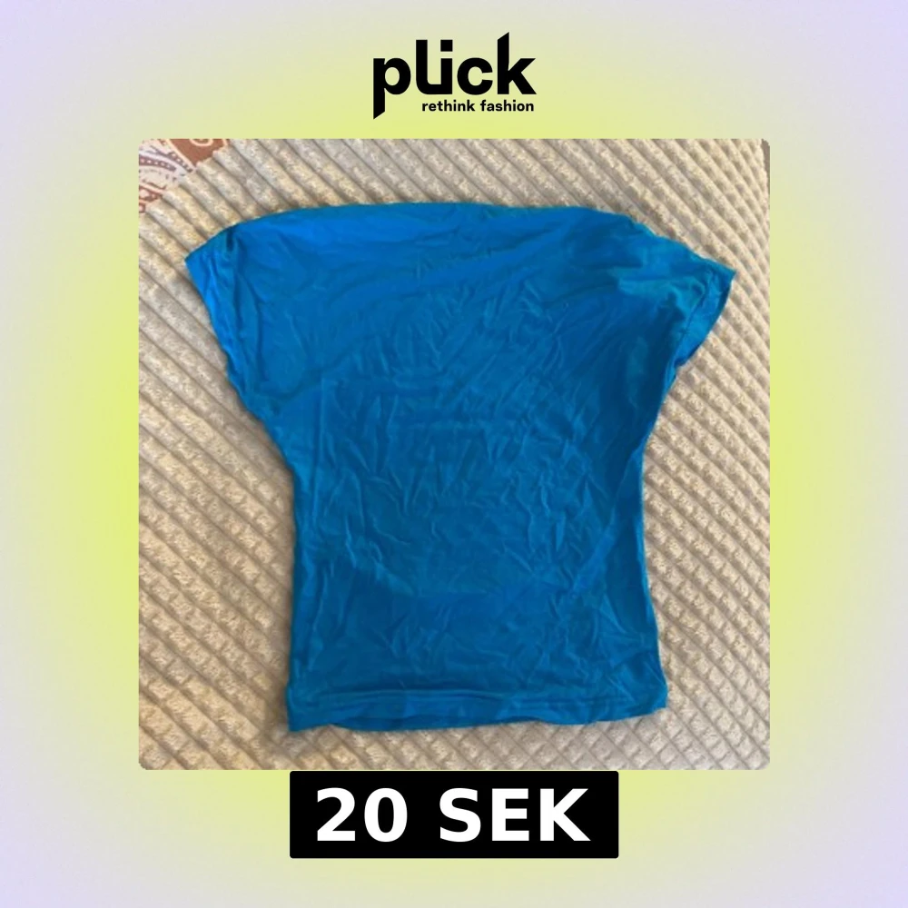 Säljer en blå topp i mjukt material med korta ärmar och en snygg öppen rygg. Lite skrynklig men försvinner lätt om man stryker den.