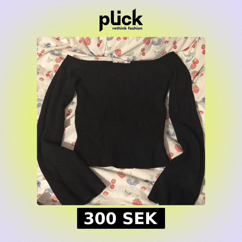 Trendig svart ribbad topp från NA-KD med offshoulder-modell och långa ärmar. Helt ny utan prislapp 🫶🏼🫶🏼