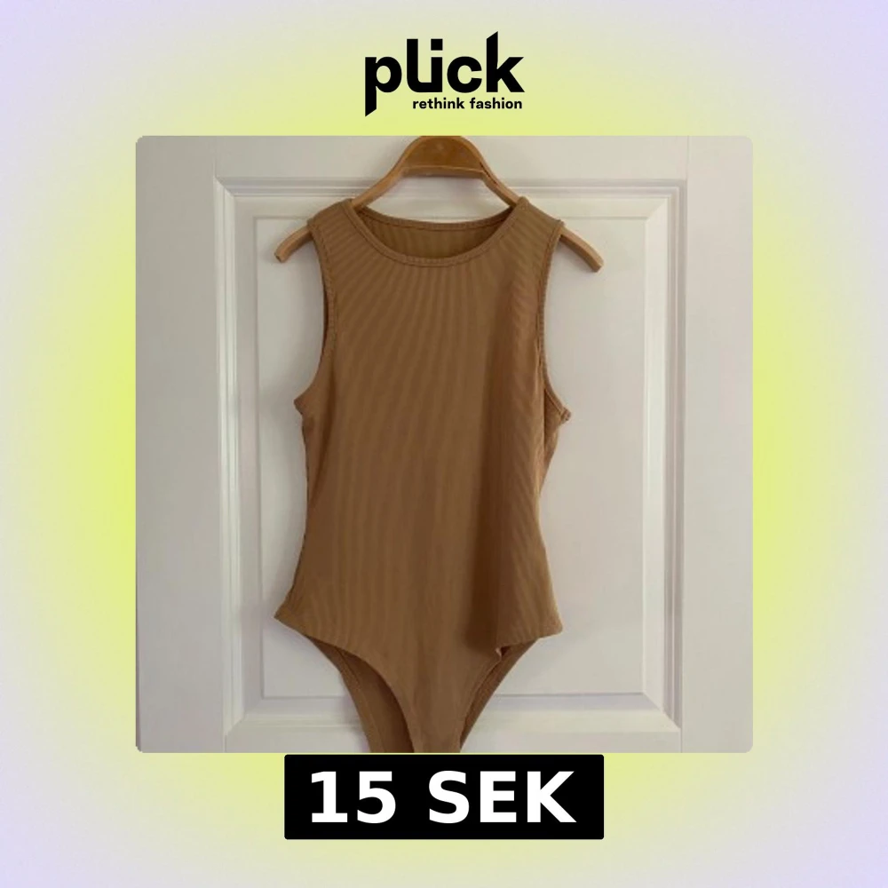 beige bodysuit med ribbad struktur och rund halsringning. Ärmlös modell som sitter tight