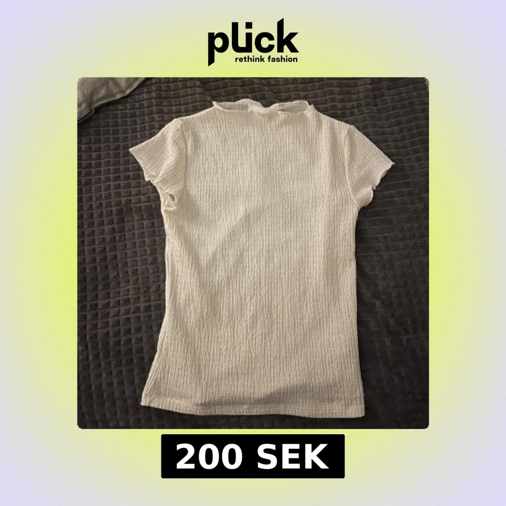 Säljer en vit ribbad topp med korta ärmar och söt volangkant vid halsen. Säljer då den inte kommer till användning. Skriv om ni har några frågor🥰💕