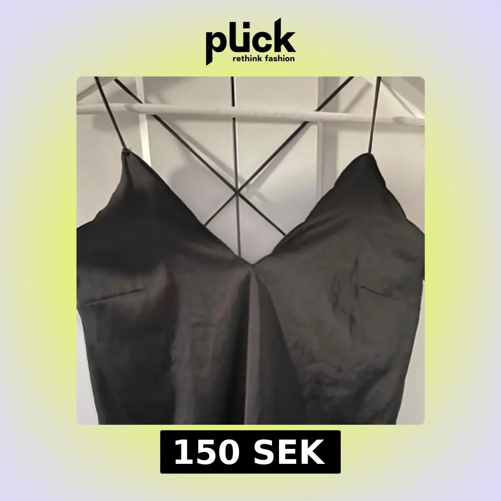 Snygg svart linnetopp med tunna axelband och v-ringad hals. Toppen har en slät, glansig yta. Banden i ryggen går som ett kors och det är bara att kontakta för flera bilder!