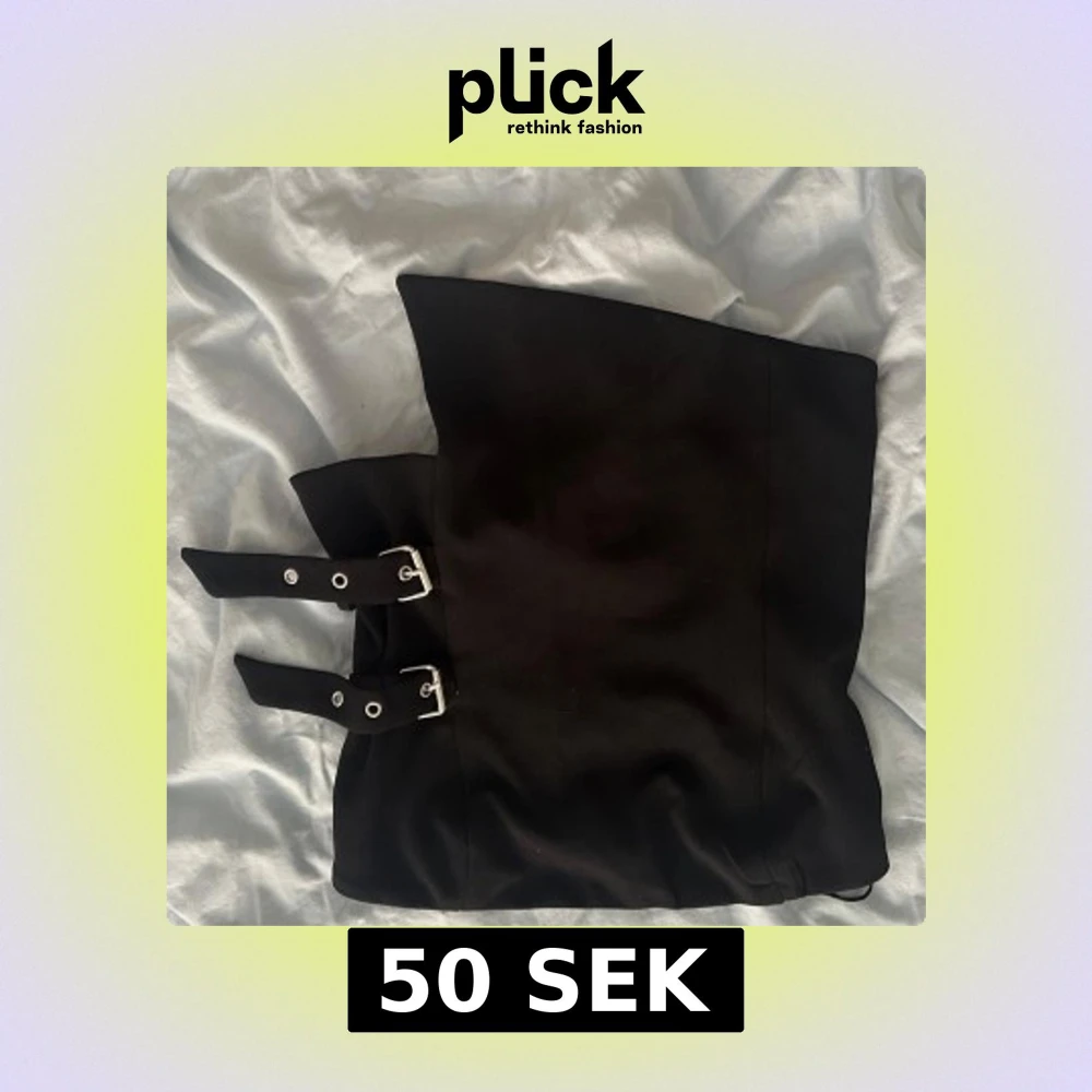 Säljer en svart topp med två coola bälten med silvriga spännen framtill. har en rak och stilren form som ger en edgy vibe. Perfekt för dig som gillar minimalistisk stil med en twist. Materialet känns mjukt och följsamt mot huden.
