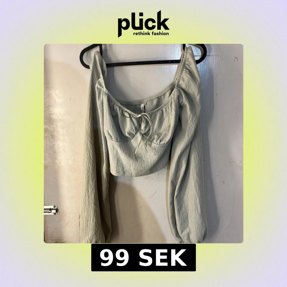 Supersöt ljusgrön blus från The Trend med långa puffärmar och knyt framtill. Blusen har en croppad passform och är gjord i ett lätt, strukturerat tyg som ger en trendig look.