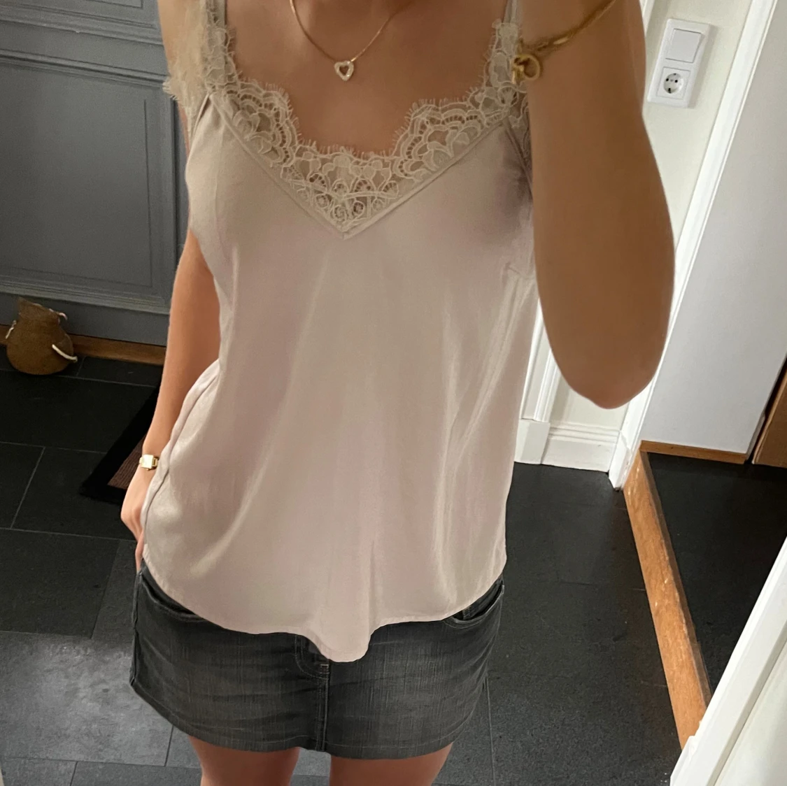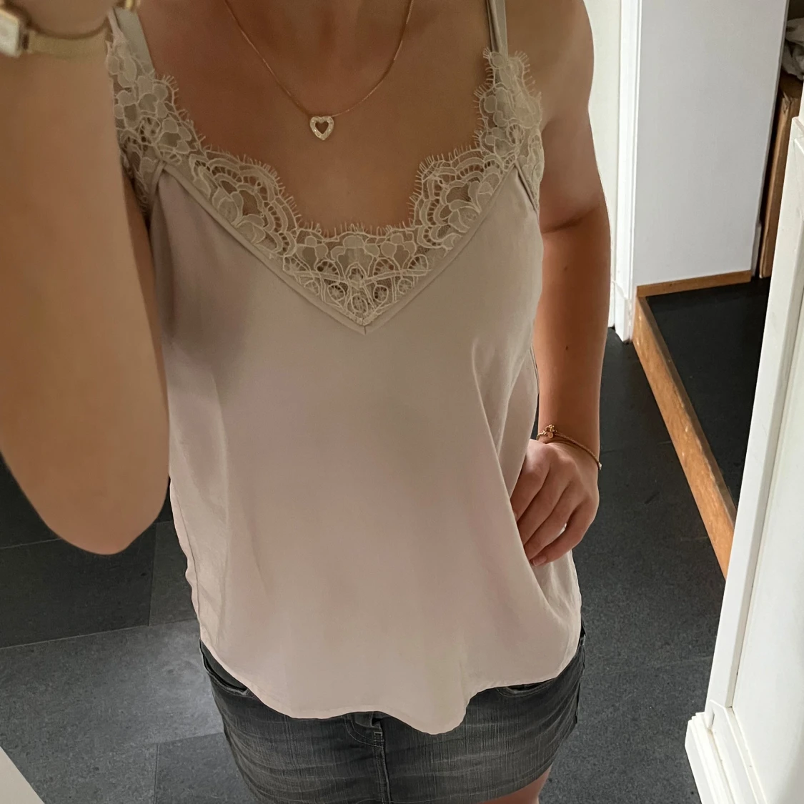 Rosa linne med spets i storlek 34 från H&M. Fint skick. Använd gärna köp nu!