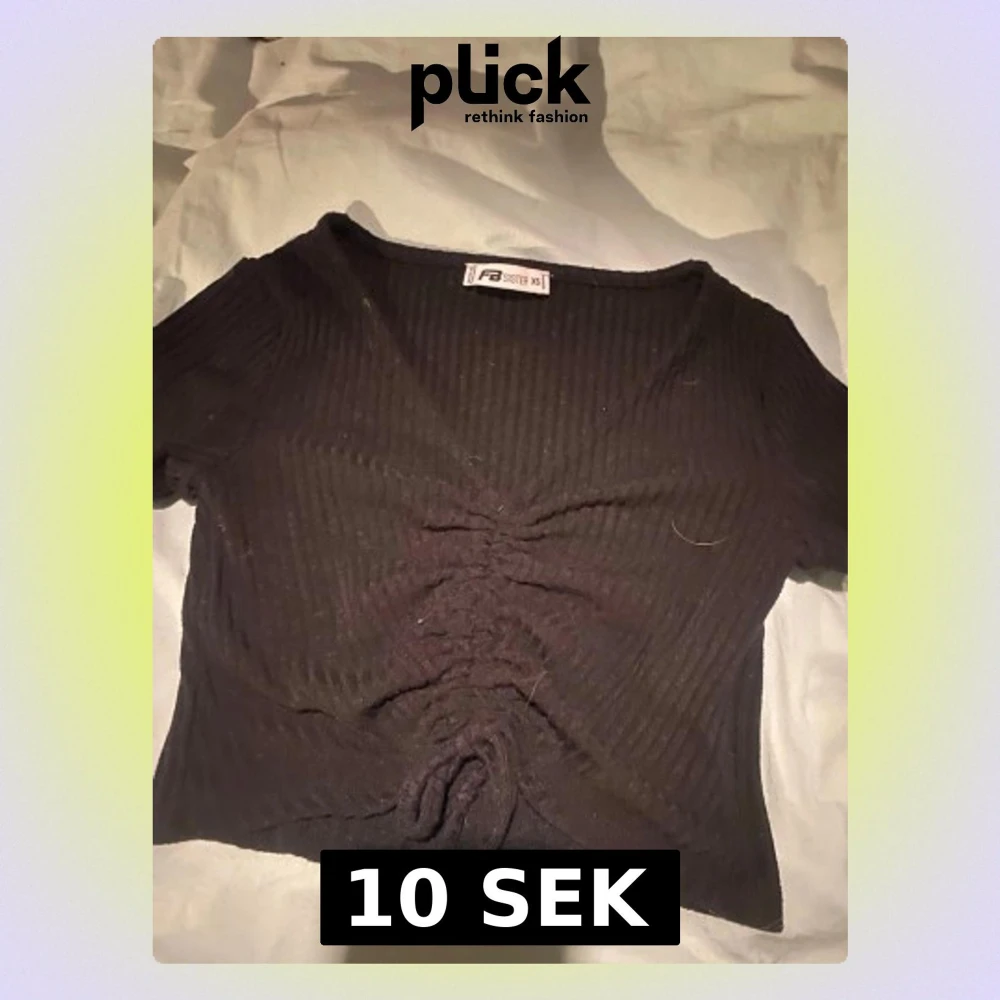 Säljer en svart ribbad croppad topp från PB Sister i storlek XS. Toppen har korta ärmar, v-ringning och snygg snörning framtill som ger en cool detalj. Perfekt till jeans eller kjol för en trendig look.