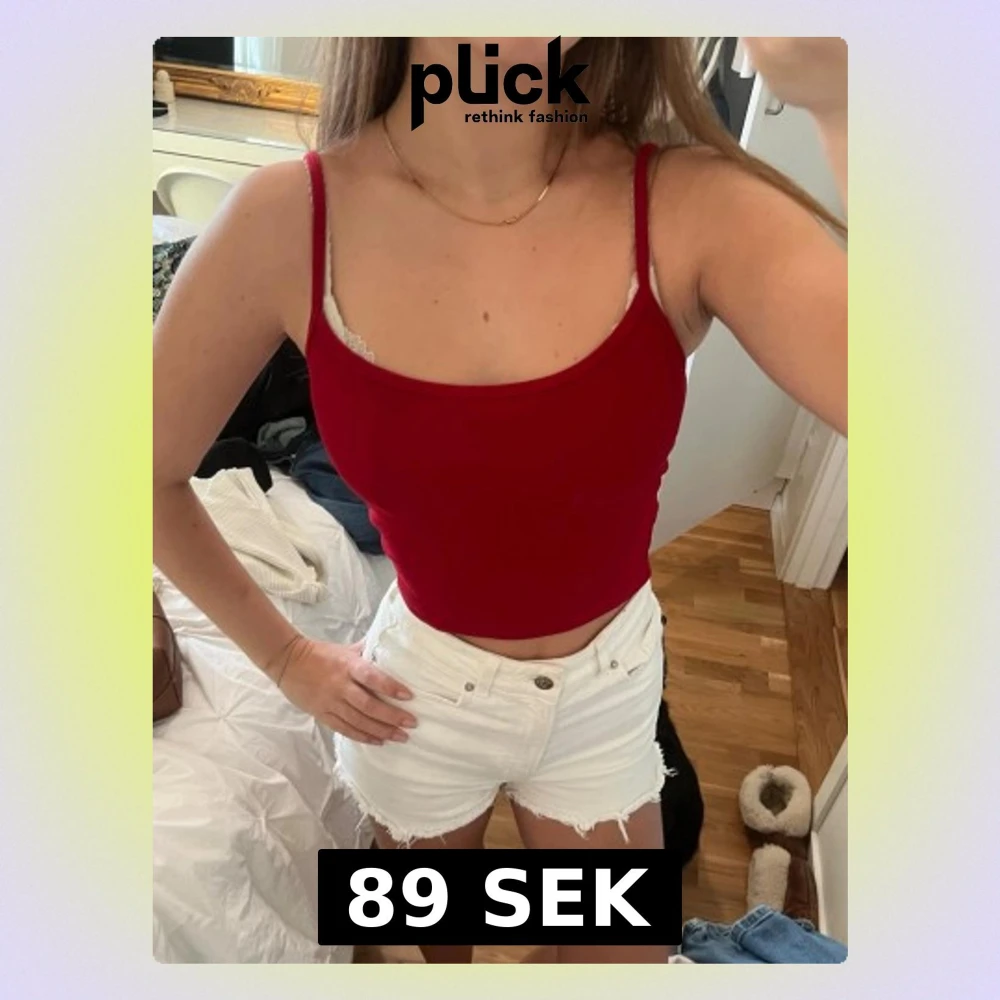 Säljer en röd croppad linnetopp med smala axelband och rund halsringning. Toppen är ärmlös och har en enkel, stilren design som passar perfekt till sommaren. Materialet känns mjukt och lätt mot huden, vilket gör den skön att bära under varma dagar.