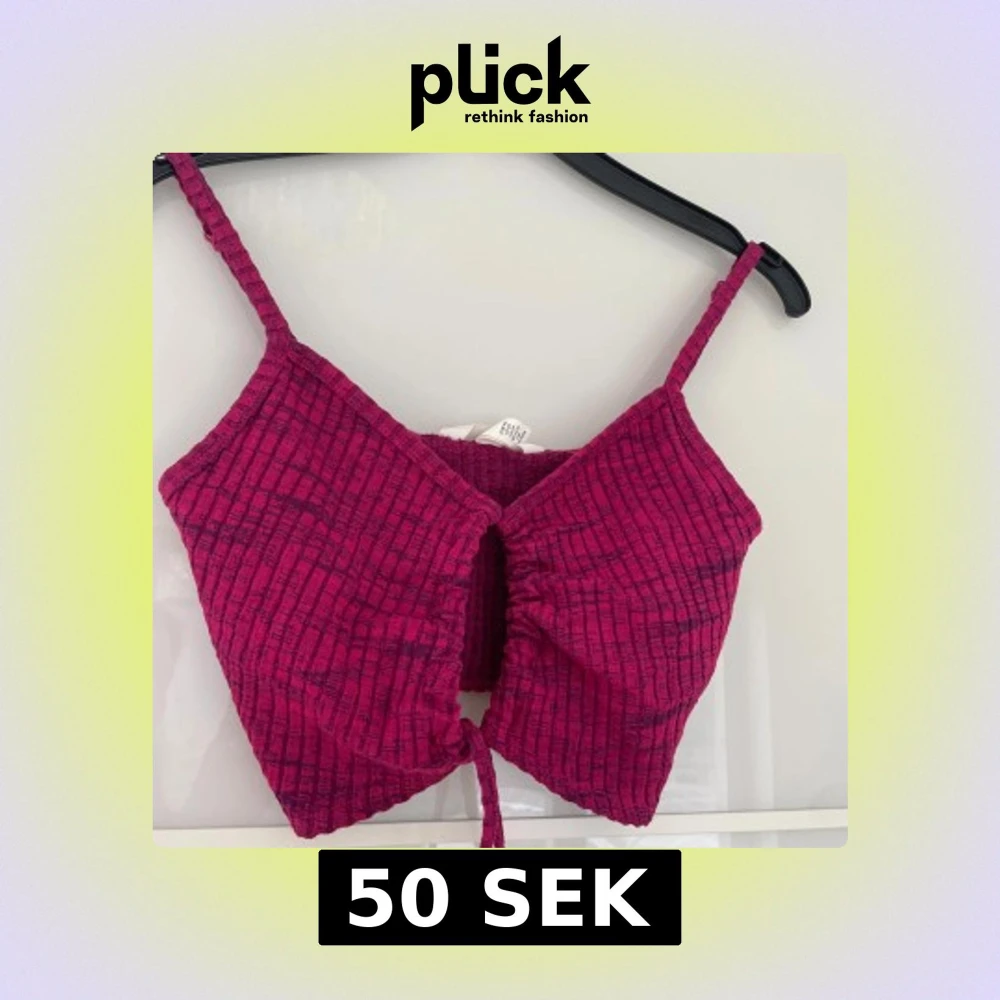 Säljer en mörkrosa croppad linnetopp med smala axelband och knyt framtill. Toppen har en ribbad struktur och är perfekt för varma dagar.