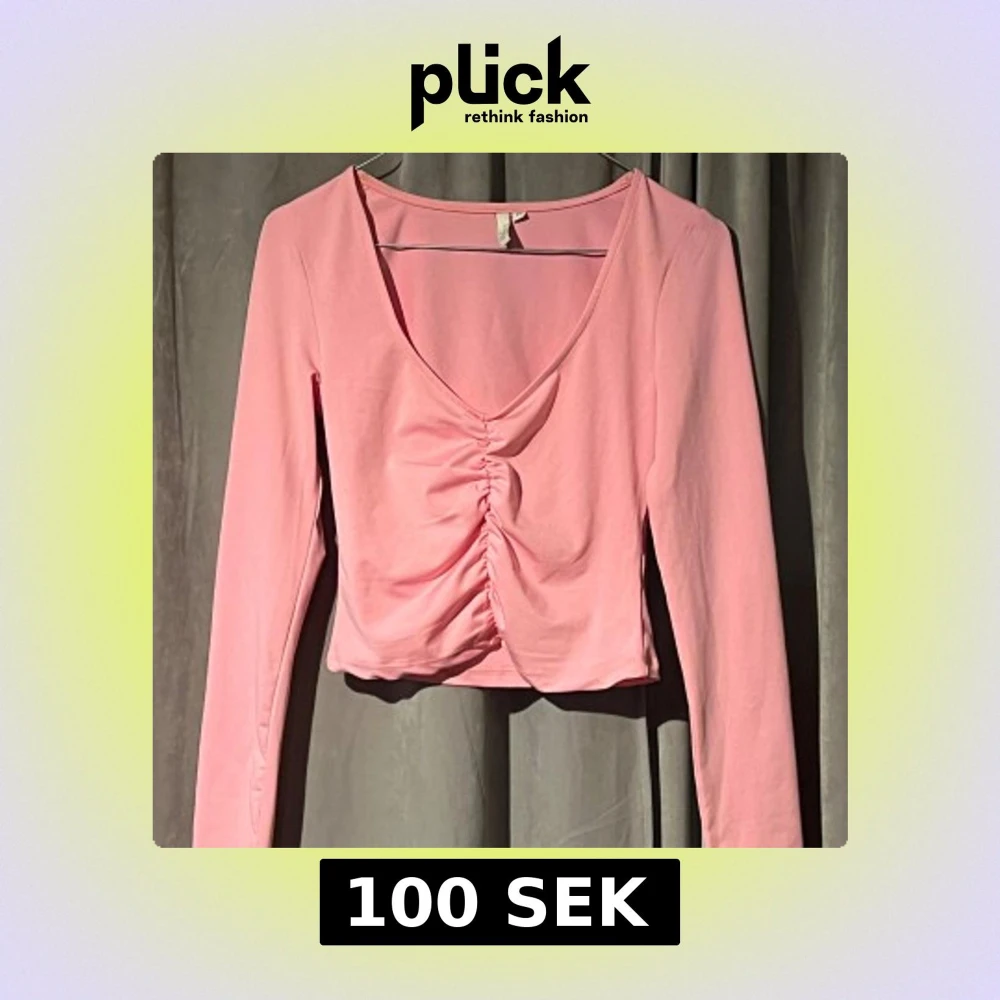 Säljer en söt rosa långärmad topp från NLY Trend. Toppen har en v-ringad design med rynkdetaljer framtill som ger en fin smickrande passform. Knappt använd! S