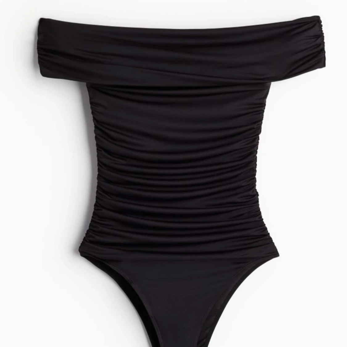 Snygg svart offshoulder bodysuit med tight passform. Materialet är stretchigt och bekvämt. Omvänd