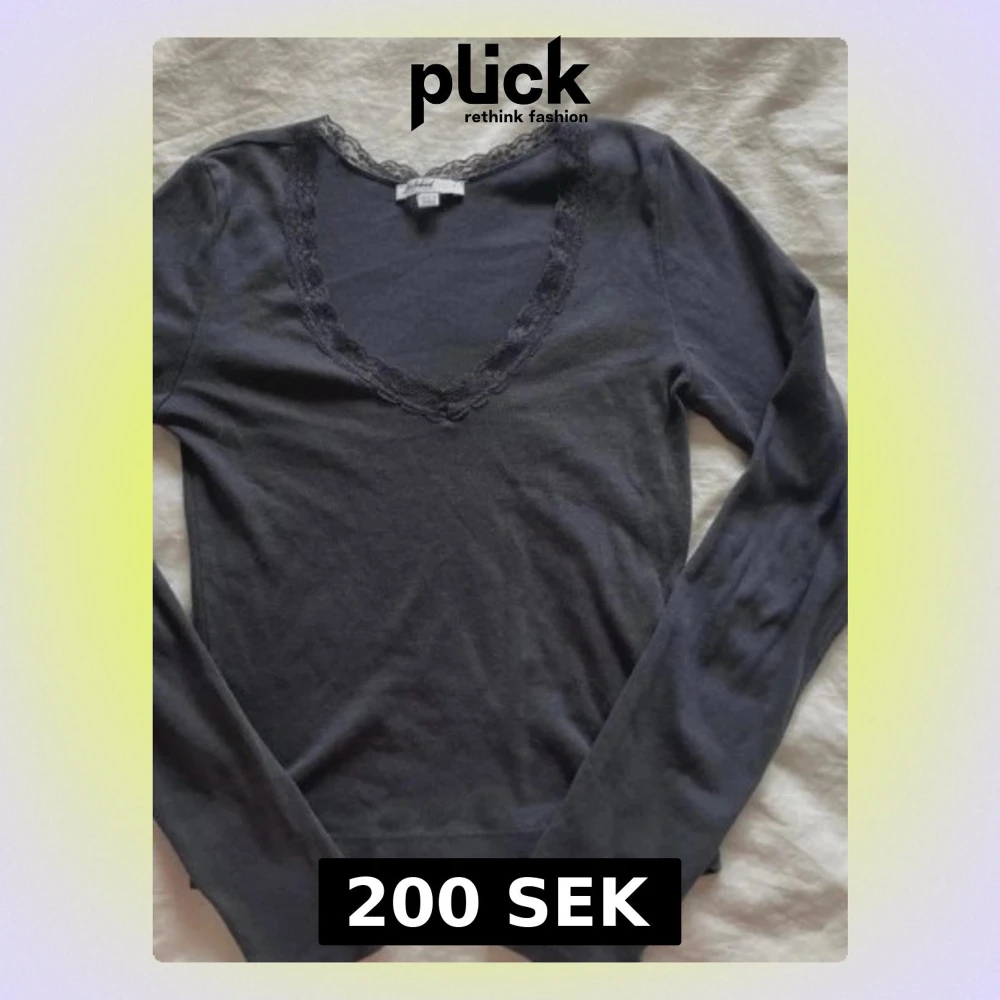 Mysig mörkgrå långärmad topp med v-ringning och spetsdetaljer runt halsen. Perfekt för lager på lager och enkel att styla till olika looks. Tunn och mjuk i materialet, passar dig som gillar en enkel men ändå snygg stil.