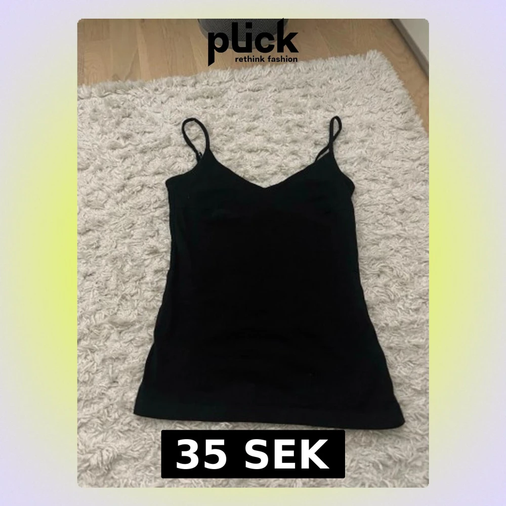 Snyggt svart linne med smala axelband och v-ringad hals. Perfekt att styla lager på lager eller bära som det är. Enkel och stilren design som passar till det mesta.
