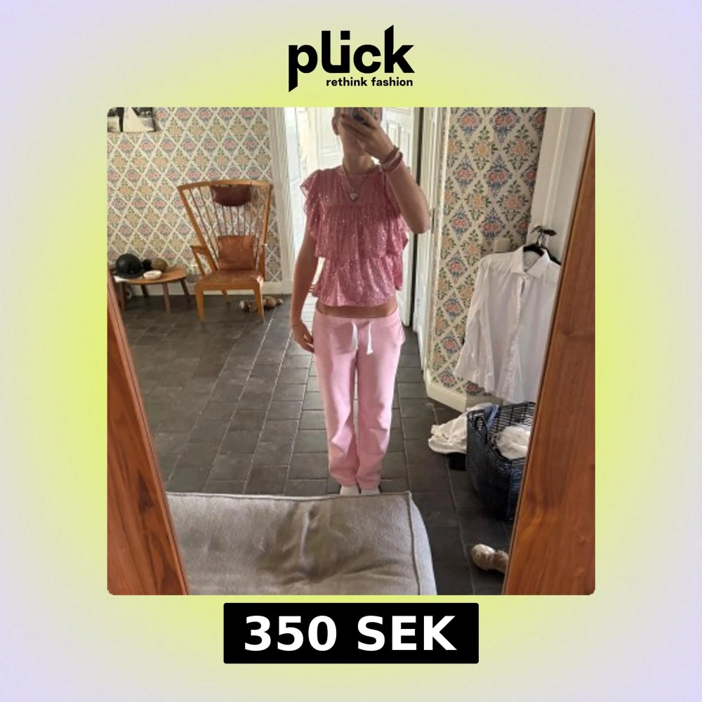 Supersöt rosa blus med glittriga paljetter och volanger. Blusen har korta ärmar och en lös passform som ger en luftig känsla. Perfekt för dig som vill sticka ut med en färgglad och festlig topp!