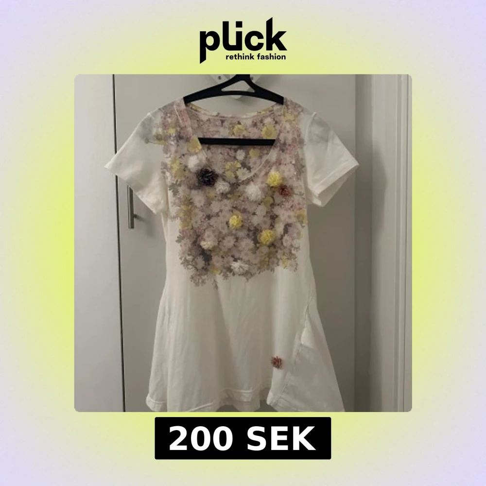 Superfin vit t-shirt med blommigt mönster och 3D-blommor i olika färger på bröstet. T-shirten har rund halsringning och korta ärmar. Perfekt för dig som vill sticka ut med en unik och söt topp!