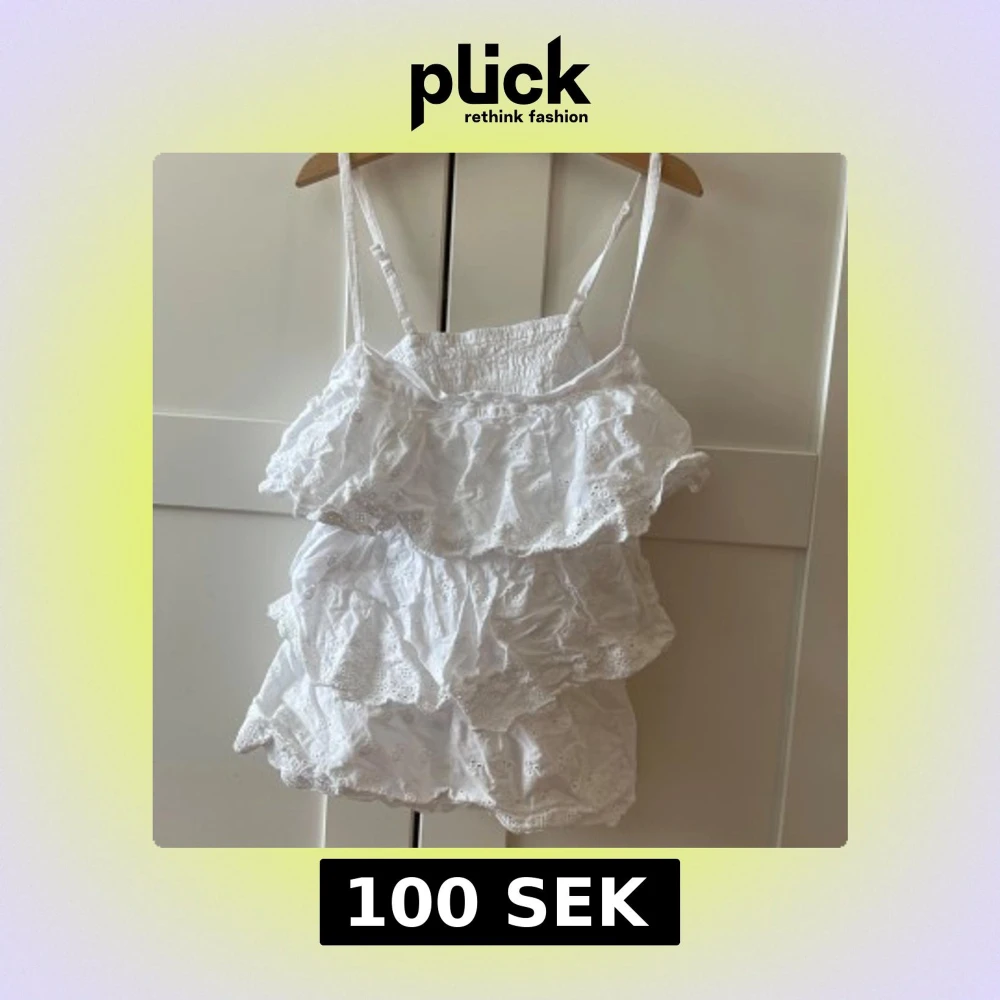 Supersöt vit linnetopp med flera lager volanger och broderade detaljer. Justerbara smala axelband och smockad rygg för skön passform. Perfekt för sommarens varma dagar och ger en romantisk vibe med sina broderade blommor och luftiga känsla.