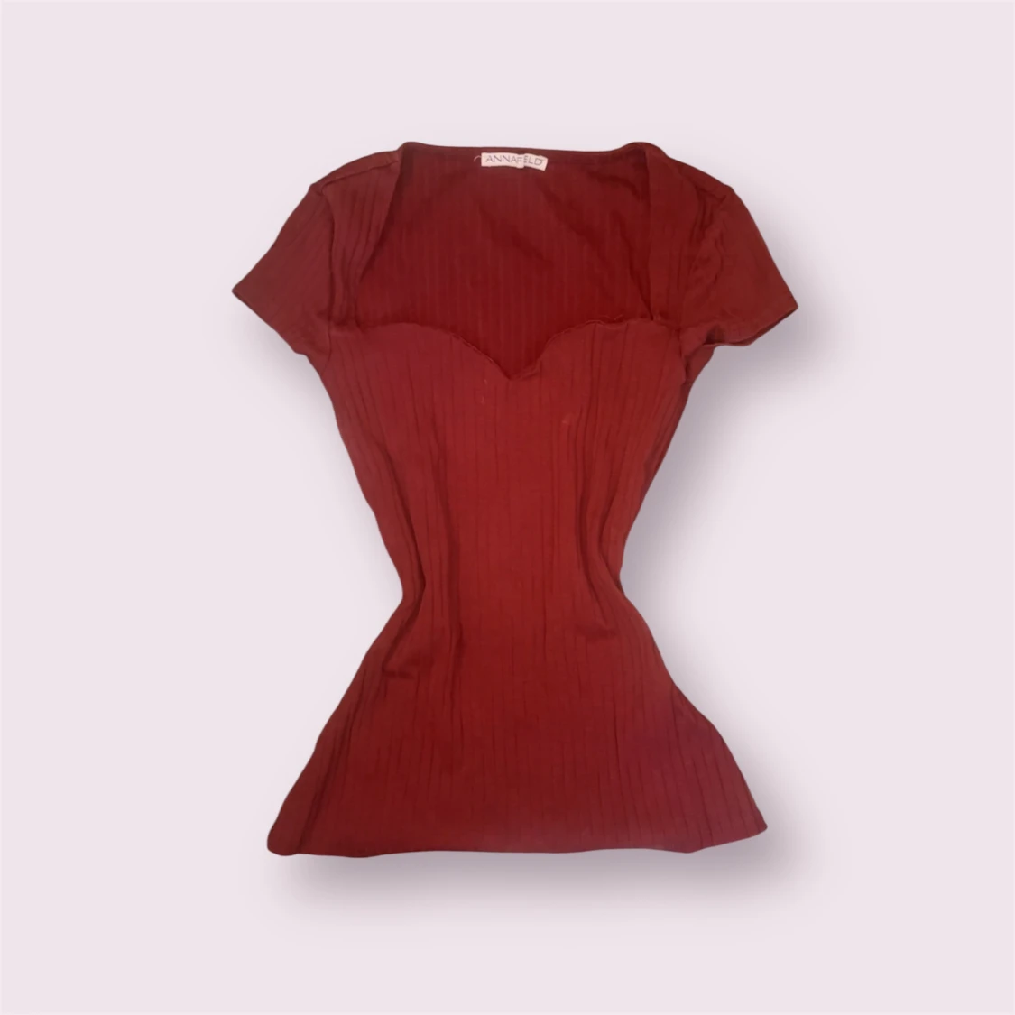 Vinröd topp från Anna Field med korta ärmar och snygg sweetheart-urringning. Ribbad struktur som ger en cool och figurnära passform. Perfekt för dig som vill ha en enkel men ändå unik topp i garderoben.