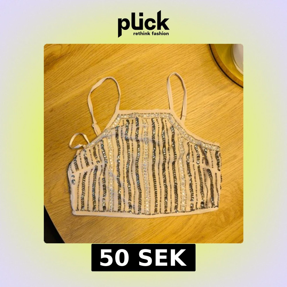Säljer en snygg beige topp från True Decadence med glittrande paljetter i silver och svart. Toppen har smala axelband och en dragkedja bak. Perfekt för en festlig kväll! ✨