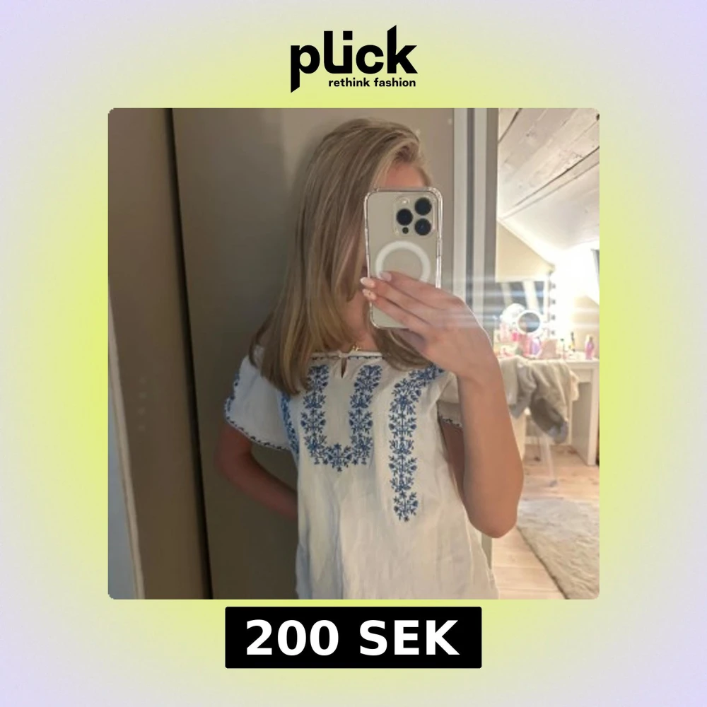 Supersöt vit blus med blå broderade detaljer framtill och på ärmarna. Såå fin😍😍 #sthlmstil #sommartopp #valentino