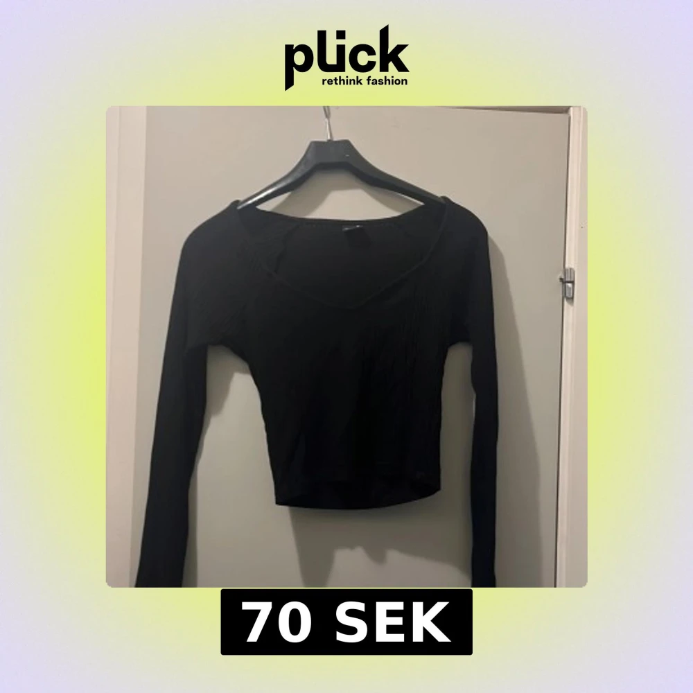 Säljer en svart croppad topp med lång ärm och v-ringad hals. Toppen har en tight passform och är tillverkad i ett stretchigt material som sitter snyggt på kroppen. Perfekt att matcha med höga jeans eller kjol.
