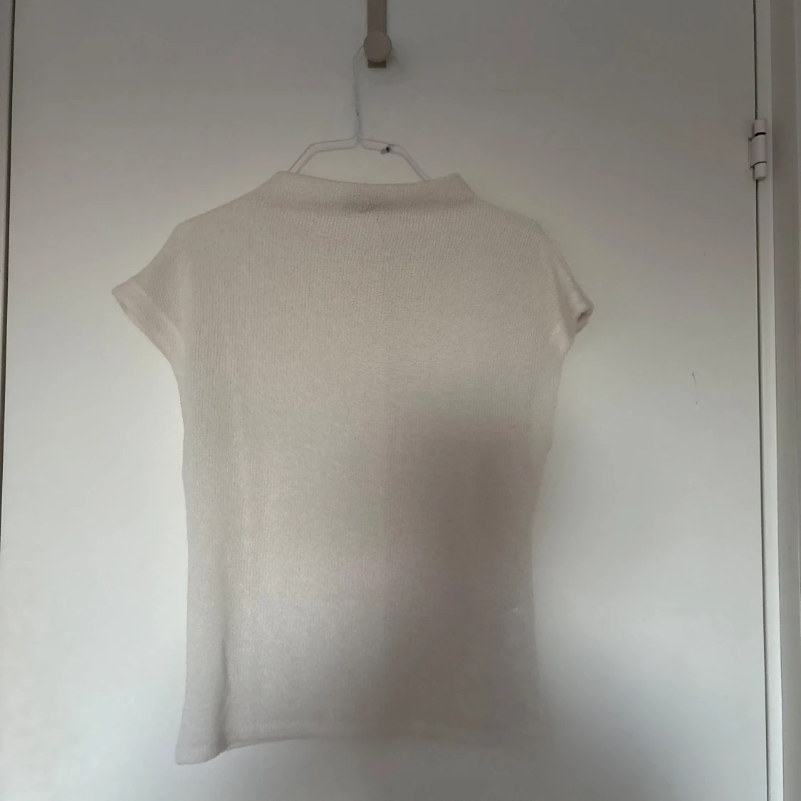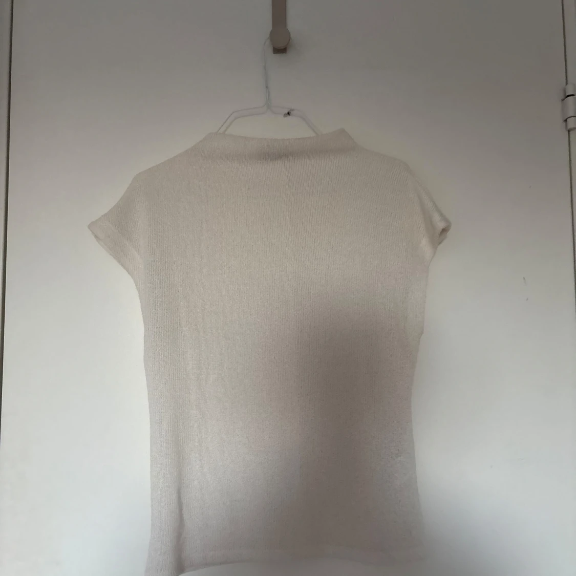 En stilren beige topp med ribbad struktur och korta ärmar. Toppen har en enkel, rak passform och liten ståkrage. Perfekt att matcha med jeans eller kjol för en clean look.