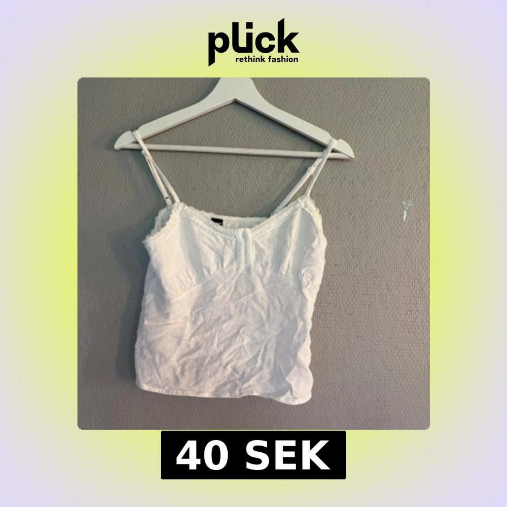 Söt vit linnetopp från SHEIN med tunna axelband och spetsdetaljer längs urringningen. Toppen har en liten knapp framtill och är i ett lätt material som passar perfekt till varma dagar. Enkel och stilren design som är lätt att matcha.