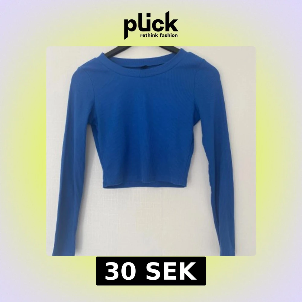 Säljer en blå croppad långärmad topp från Shein i ribbad bomullsmix. Enkel och stilren modell med rund halsringning och tight passform.