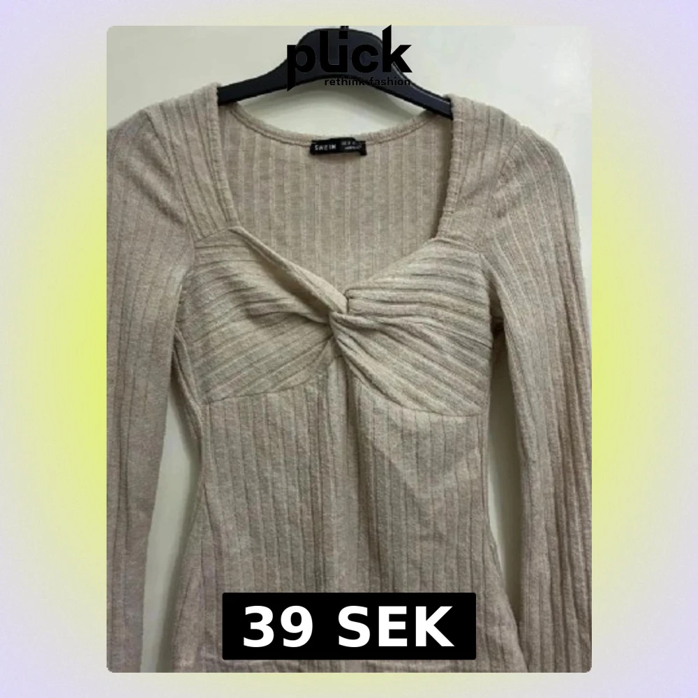 Snygg beige ribbad topp från SHEIN i storlek XS. Toppen har lång ärm, twistad detalj framtill och en fyrkantig ringning. Materialet är mjukt och stretchigt, perfekt för dig som gillar en slim passform. Den neutrala färgen gör den enkel att matcha med allt.