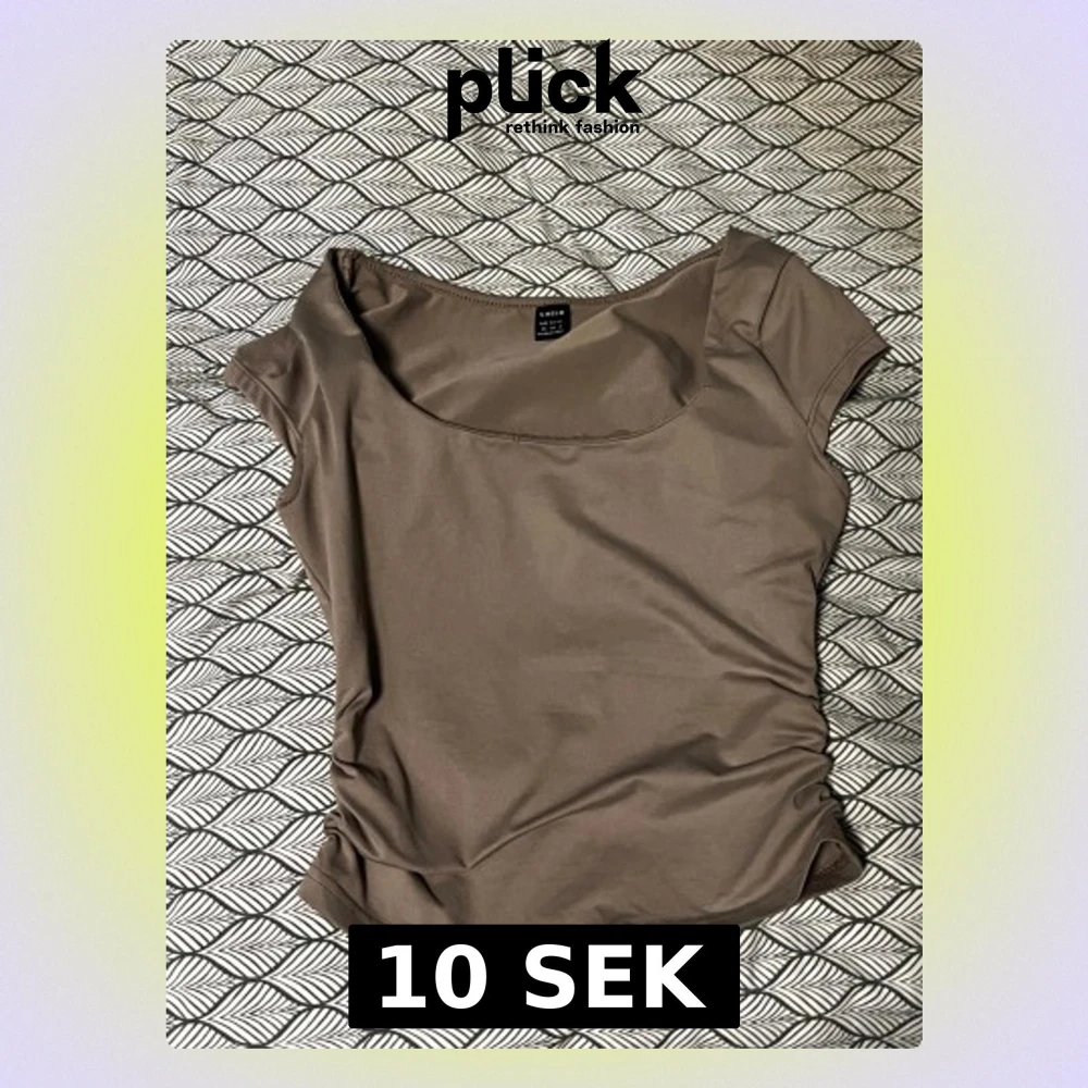 Snygg beige topp från SHEIN med rundad halsringning och korta ärmar. Tunn och mjuk i materialet, perfekt för dig som gillar stilrena och enkla plagg. Passformen är normal och tyget har en lätt stretch. Enkel att matcha med jeans eller kjol.