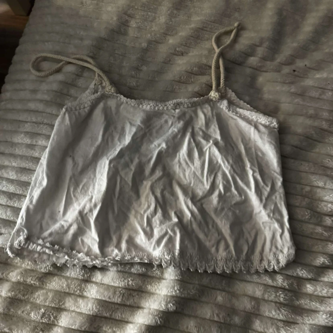 Säljer en söt vit linne med smala axelband och spetsdetaljer vid kanterna. Perfekt för varma sommardagar eller som ett lager under en tröja. Enkel och stilren design. Det är ett linne från Argentina men har inte använt det. Storleken är en xs/s. Vi står för frakt