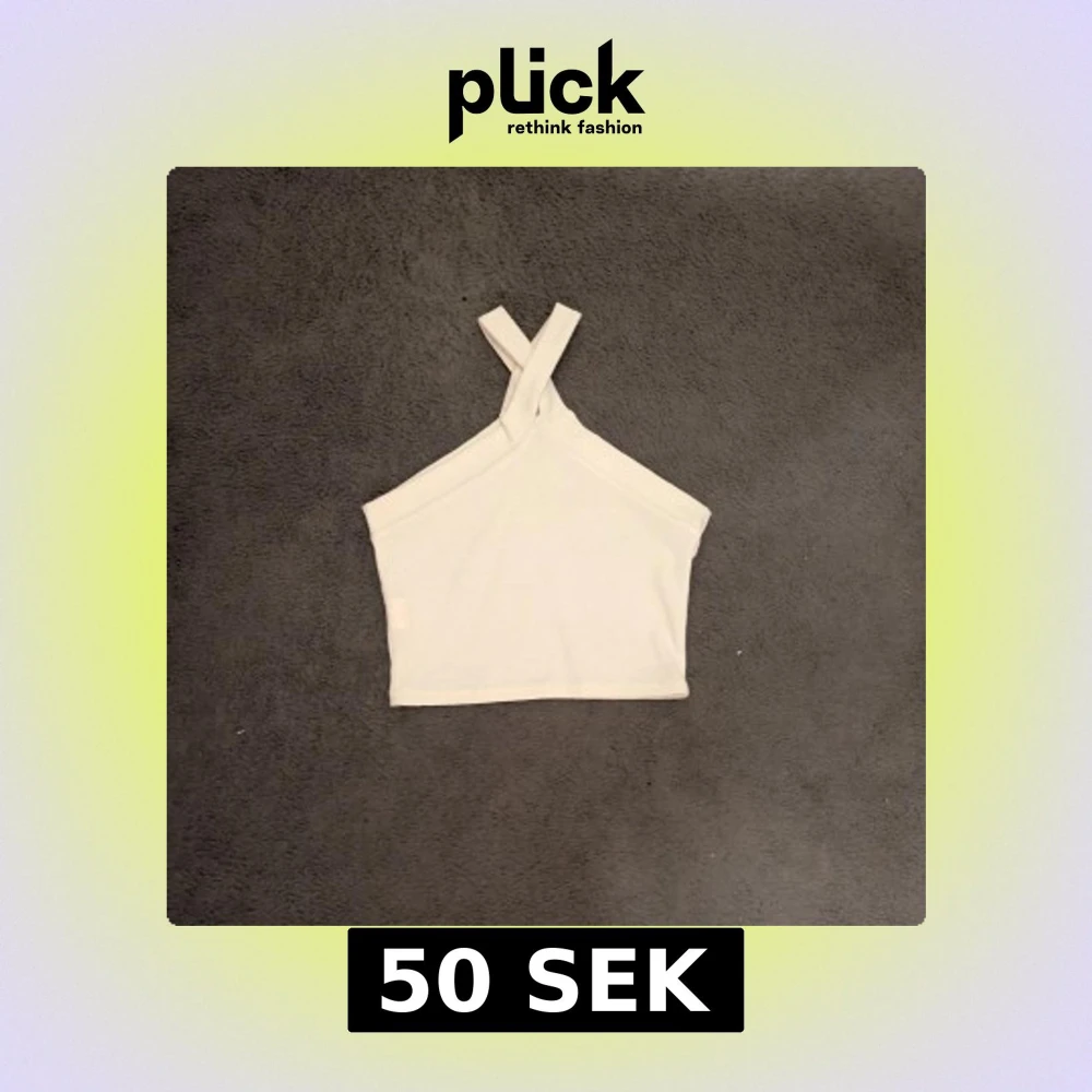 Säljer en vit croppad linnetopp med snygga korsade axelband framtill.