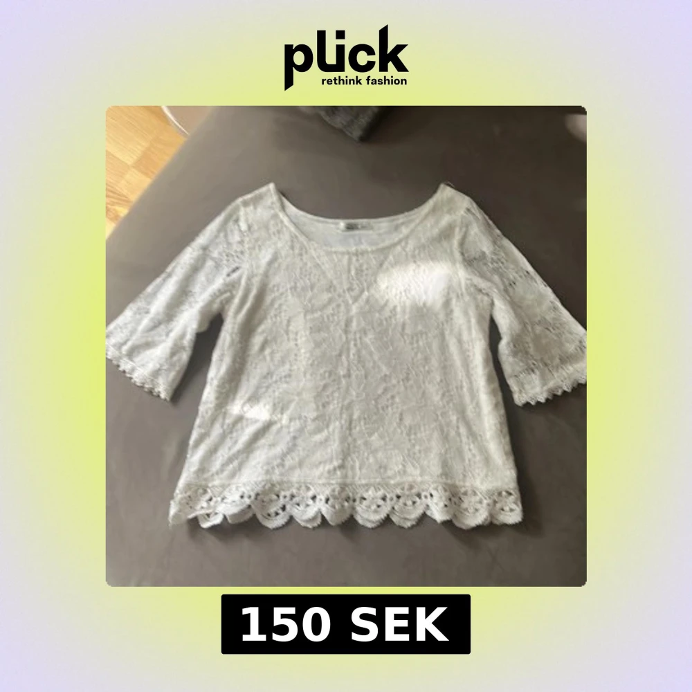 Säljer en vit blus från Nice Claup med blommig spets och rund halsringning. Blusen har trekvartsärm och vacker broderad kant längst ner. Perfekt för dig som gillar romantiska detaljer och ljusa toner.