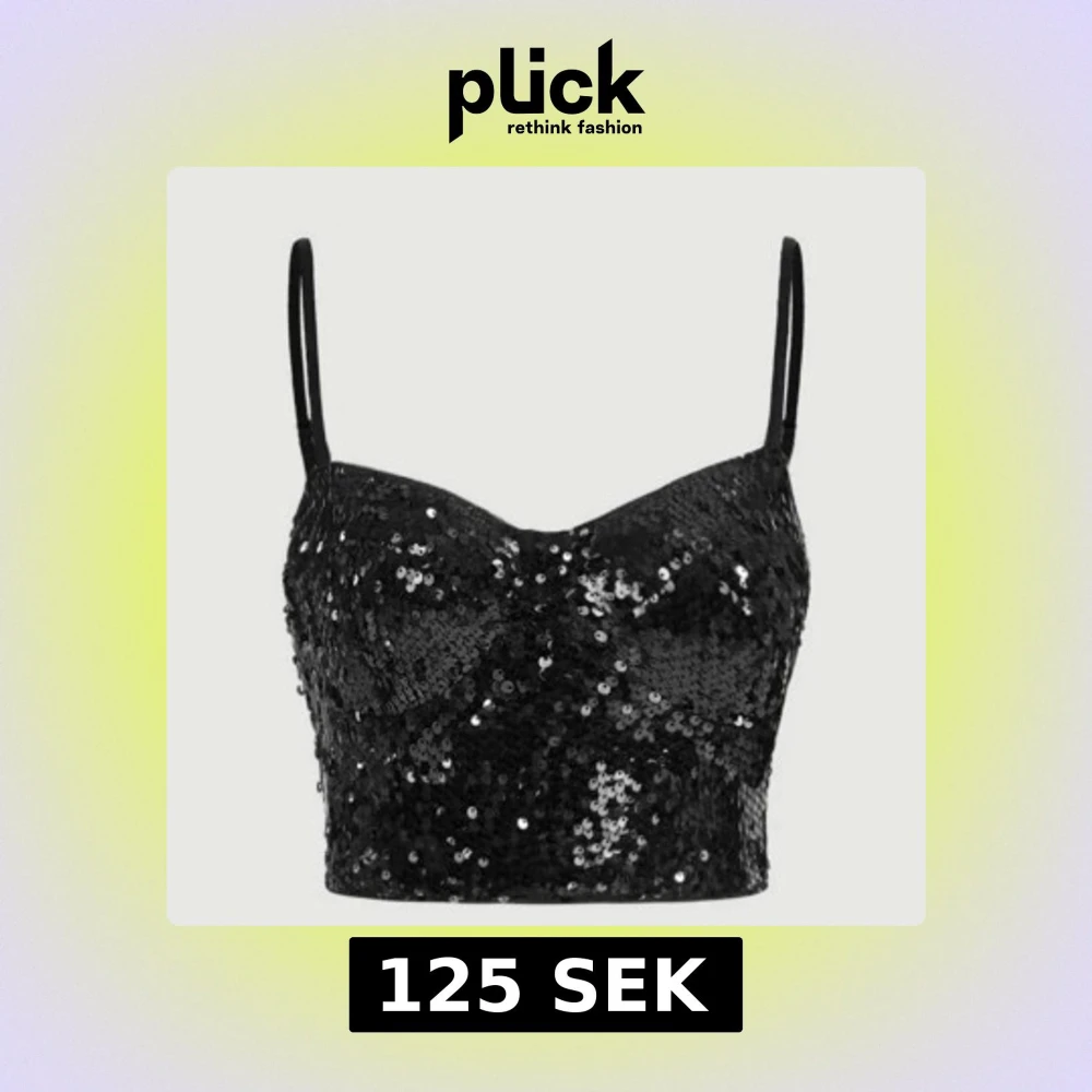 Snygg svart korsettopp med paljetter och smala axelband. Toppen har en dragkedja i ryggen för enkel på- och avtagning. Perfekt för en glittrig kvällslook!