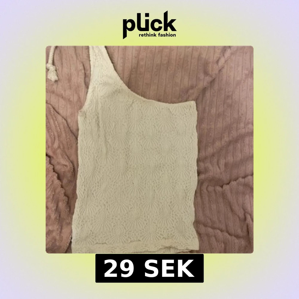 Säljer en stilren oneshoulder topp med ett subtilt mönster. Perfekt för en trendig look. Passar bra till både jeans och kjol. den är krämvit